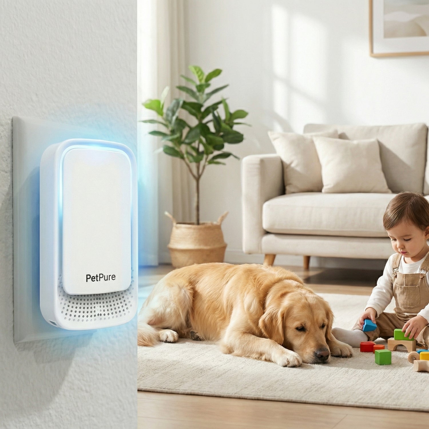 This purifier works by continuously treating the air in your space rather than masking odors with fragrance. Pet odors, dander, and particles linger in the air long after cleaning — this device helps neutralize them quietly in the background, so the air feels genuinely fresher over time.